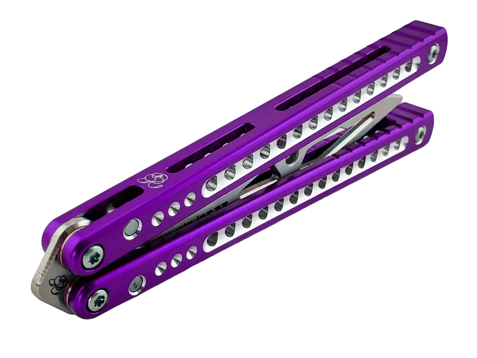 It features 7075 Aluminum Handles with Speed Channels, Hand Tuned Phosphor Bronze washers and an adustable weight system. The blade is made of heat treated 410 Stainless Steel which is precision ground and hand polished with a crowned spine for comfort.